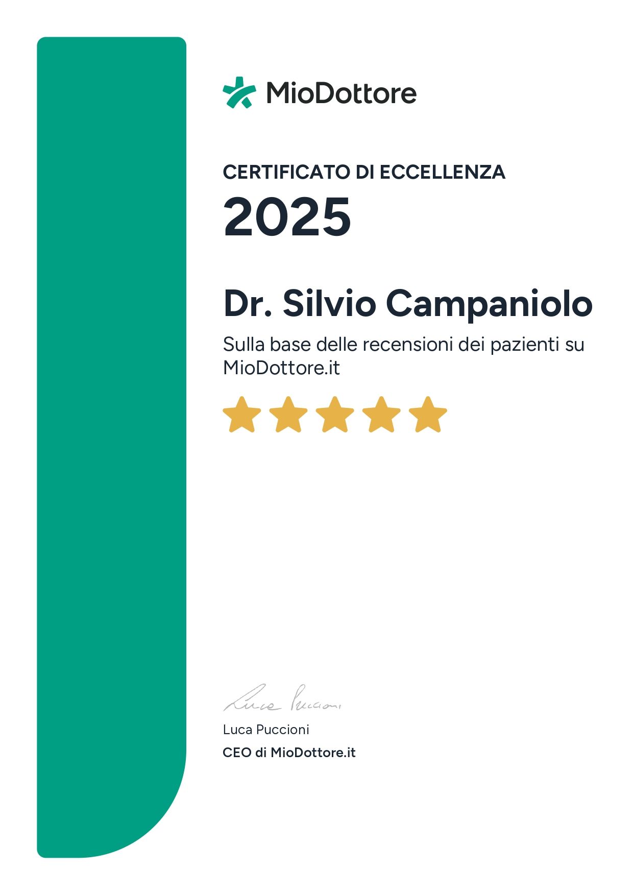 Sono il dr. Silvio Campaniolo, medico certificatore con oltre 15 anni di esperienza clinica nell’ambito della medicina sociale e preventiva, con particolare riferimento alla valutazione dell’idoneità nei settori dei trasporti, della sicurezza stradale, della navigazione marittima e dell’uso delle armi.